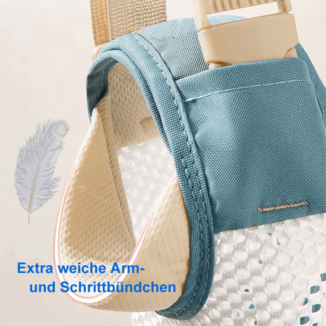 Die Baumwollpolsterungen verhindern ein Einklemmen oder Scheuern unter den Achseln sowie im Schritt und sorgen für höchsten Tragekomfort Deines Kindes.