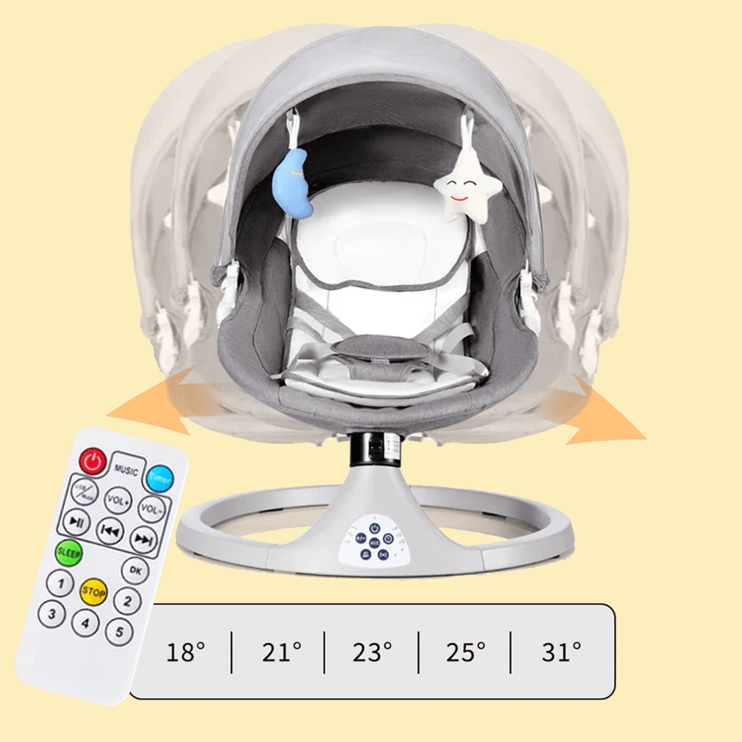 - Einfache Bedienung: Intuitive Steuerung sowohl an der Wiege als auch per Fernbedienung.