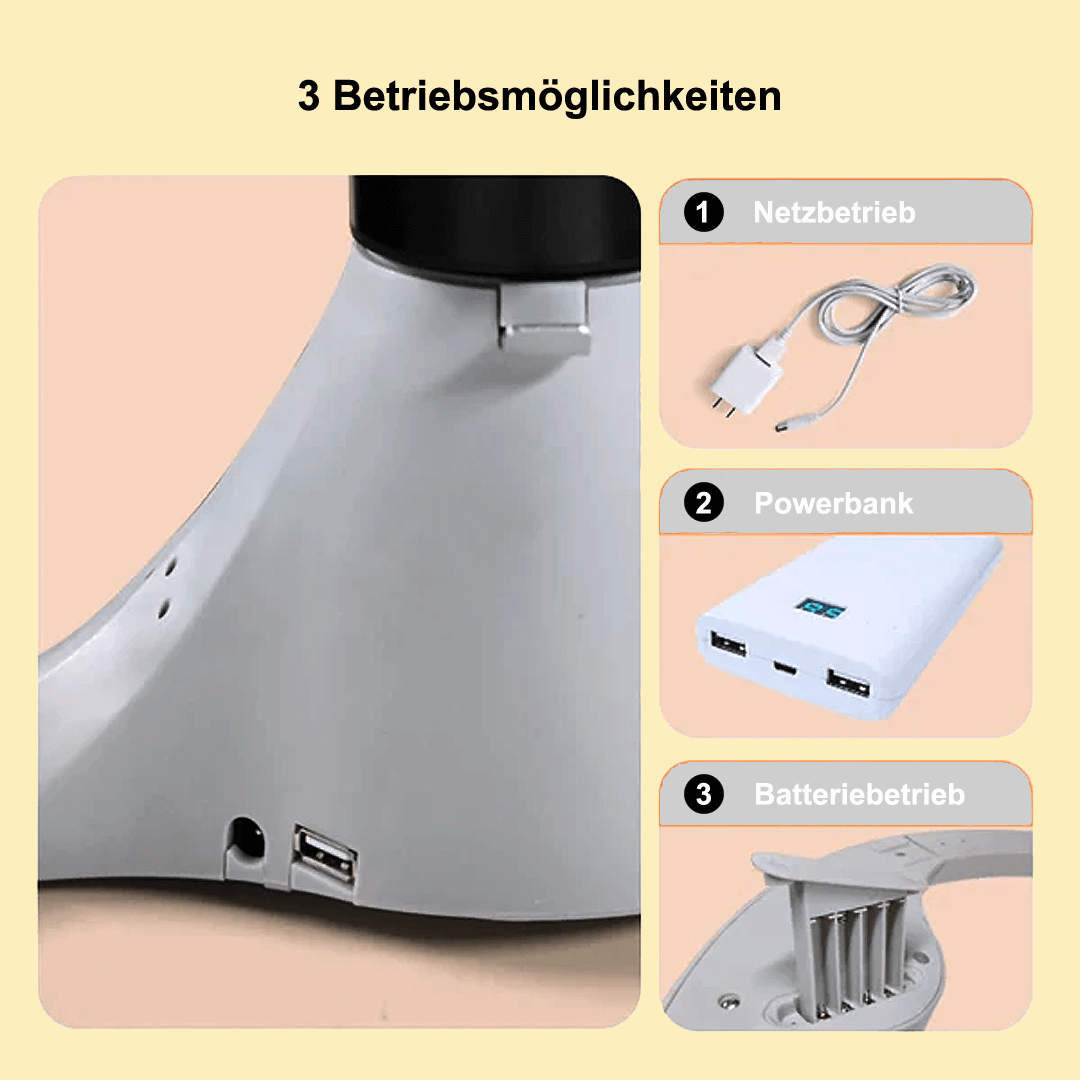 Dank wahlweisem Netz- und Akku- oder sogar Batteriebetrieb sowohl zuhause, draußen und auf Reisen einsetzbar.